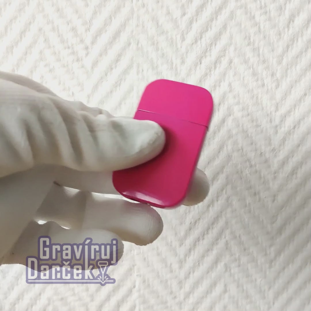 Kovový plynový zapaľovač Jet Flame – Ružový. Na zapaľovač môžete pridať ľubovoľný text, vybrať si z ponúkaných fontov alebo nahrať vlastný dizajn.